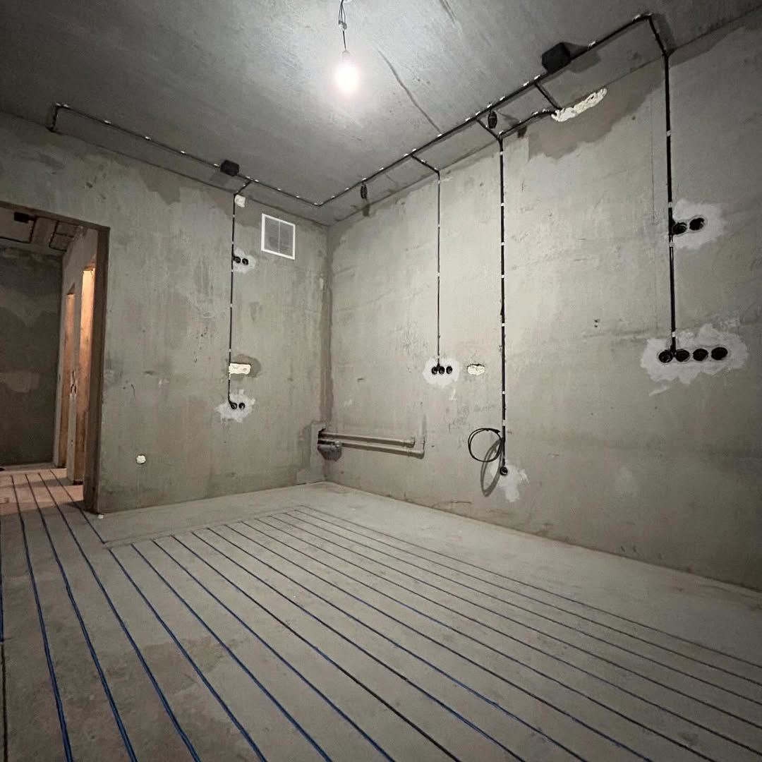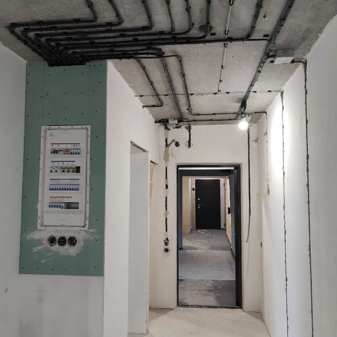 ☑️ выполнен проводной интернет по квартире к ТВ ☑️ сделана ТВ зоны с закладной в гостиной ☑️ добавлены 2 линии для духового шкафа и посудомойки, теплых полов, заменена линия на санузел ☑️выполнен монтаж нагревательного кабеля на кухне/коридоре и в санузле (120 м. погонных) ☑️ добавлены розетки и выключатели по квартире (общей сложностью 68 подрозетников)