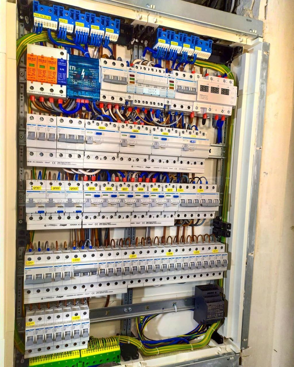 ☑️заменена проводка согласно проекта ☑️собран щит силовой и установлен щит для блоков питания светодиодной подсветки ☑️ есть мастер выключатель на входе, автоматическая ночная подсветка от реле времени, много групп проходных и перекрестных выключателей. ☑️ всего ушло порядка 1200м кабеля и проводов.